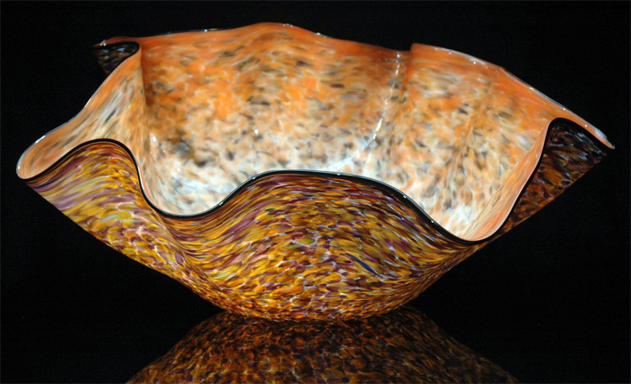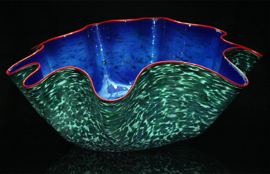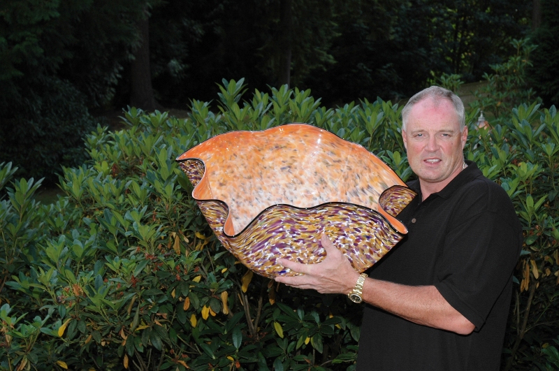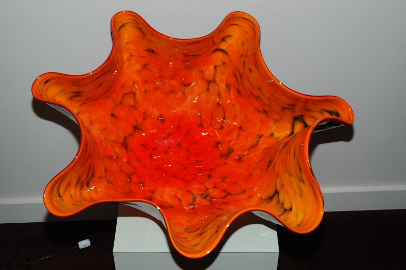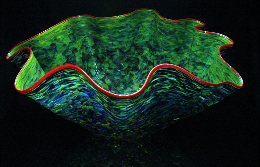 Artist Robert Kaindl is inspired by nature and the classic Murano (Italy) Glass blowing techniques, while infusing his own elegant yet organic style. The Ostrea Series emulates this ancient mollusk re-imagined by utilizing a vibrant modern color pallet. This amply named Giant Ostrea Series is an exceptional body of work. The dexterity and strength required to work with such massive quantities of art glass is awe inspiring.