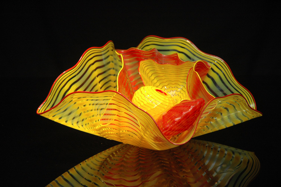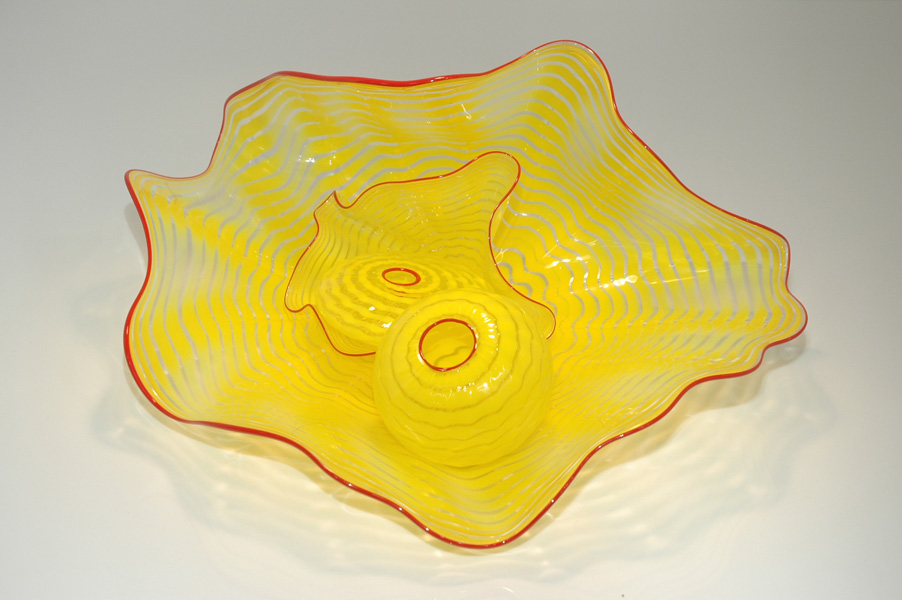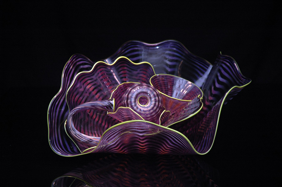 Artist Robert Kaindl is inspired by nature and the classic Murano (Italy) Glass blowing techniques, while infusing his own elegant yet modern style. Robert’s inspiration for this gorgeous series were several sea creatures; mollusks, jellyfish and sea anemones. Glass in its fluid state is malleable, supple and translucent not bound by form. Robert created this beautiful and unusual series by allowing these organicshapes to come out of the glass.